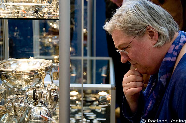 Bezoekster van een kijkdag van de veiling van overtollige inboedel van de Oranje's; Sotheby's, De Boelelaan 08-03-2011 |