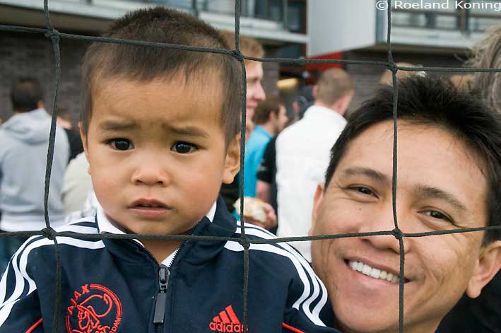 Papa telefoneert nog even voor de wedstrijd van Ajax tegen Excelsior 24-04-2011 |
