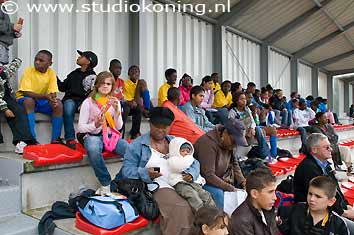 op de tribune tijdens een schoolvoetbaltoernooi op de Toekomst