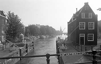Foto Amsterdam Goslerhuisje bij de Antoniesluis, de Anhoniesluis of Sint Antoniessluis