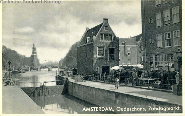 | Gosler huisje, St. Antoniesluis, foto naar ik schat uit de dertiger jaren van de 20ste eeuw. De Zondagmarkt Dit huisje lag midden in de Jodenbuurt. Kijkend vanaf de Jodenbreestraat naar de Oudeschans. | |