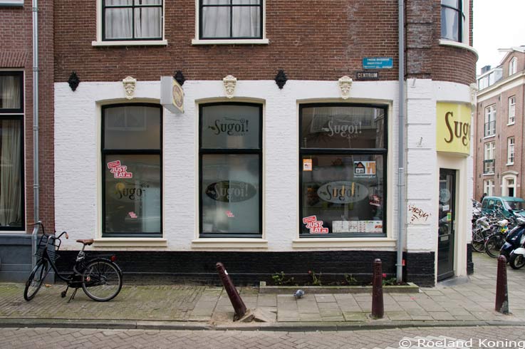 Dezelfde straathoek als de foto hierboven. Tweede Goudsbloemdwarsstraat met de Willemsstraat. Het is inmiddels geen snackbar meer maar Sugoi! Een sushi zaak met het officieele adres Willemsstraaat 95. Foto 15-11-2012 |