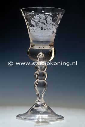 Geraveerd glas met het VOC schip "De Amsterdam".