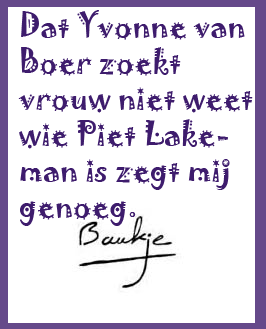 Baukje 118 MAIL OOK EENS TEKST EN BAUKJE MAAKT ER HIER EEN POSTER VAN | |