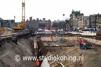 tunnelboor zijn er nu ook kleine mollen bezig op het Damrak 25-02-2010