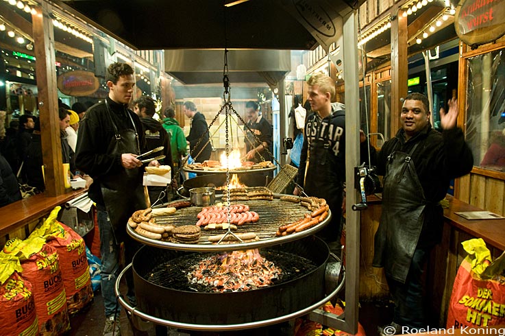 braadworsten op de kerstmarkt. Foto 14-12-2013