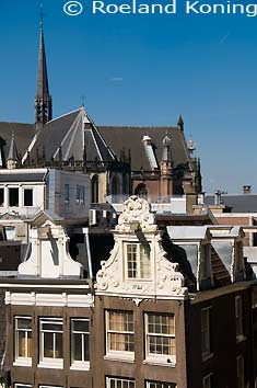 In de achtergrond de toren van de Oude kerk.