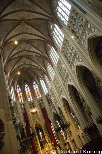 | Den Bosch, Hinthamerstraat 57 de Dry Hamerkens zou uit 1580 dateren en dat lijkt mij ook wel waarschijnlijk, is nu een chocolaterie | Aan de Sint-Janskathedraal in Den Bosch is gebouwd tussen 1220 en 1530. Hier een kijkje in het koor. |