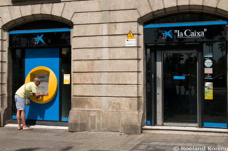 Geldautomaat van La Caixa en Catalunya Caixa op het vliegveld van Barcelona |