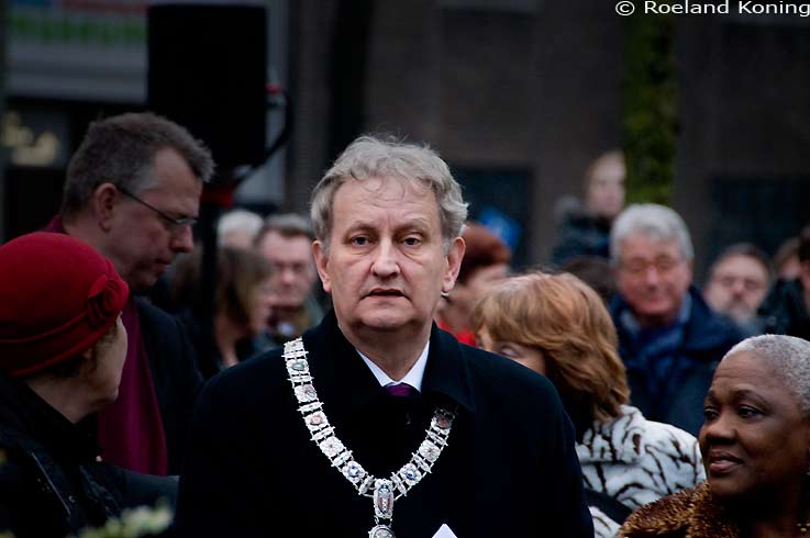 | Burgemeester Eberhard van der Laan houdt een toespraak | Oud Burgemeester Ed van Thijn |