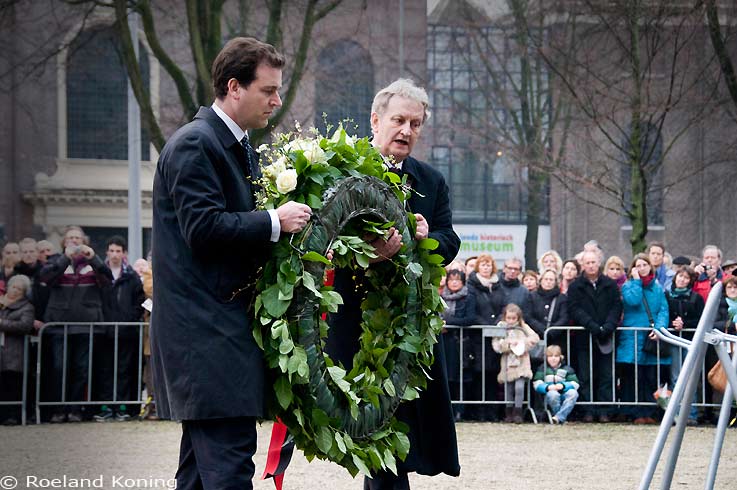 | Herdenking van de februaristaking in Amsterdam van 70 jaar geleden. Wethouder Lodewijk Asscher en Burgemeester Eberhard van der Laan leggen een krans; 25-02-2011 | |