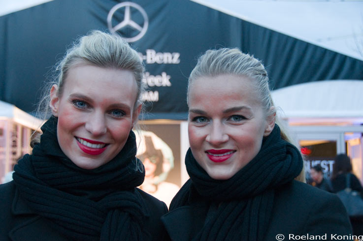 De hostessen van Mercedes op de Amsterdam Fashion Week. Foto 24-01-2014 |