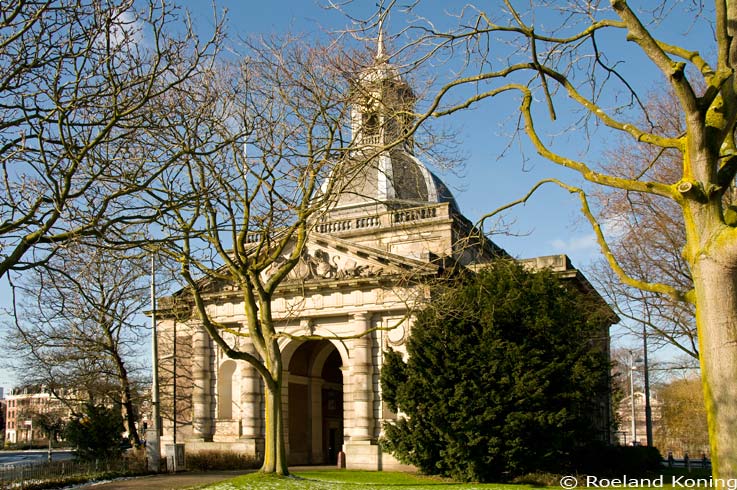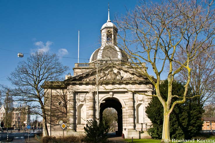 | De Muiderpoort is door stadsbouwmeester Cornelis Rauws (1732-1772) ontworpen en dateert uit 1770; Klik hier voor de Haarlemmerpoort | |