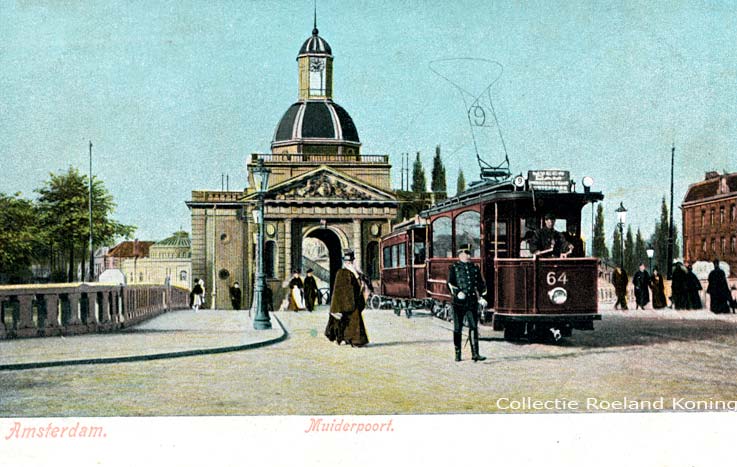 | De Muiderpoort met tram 9 aan het begin van de 20e eeuw. | |