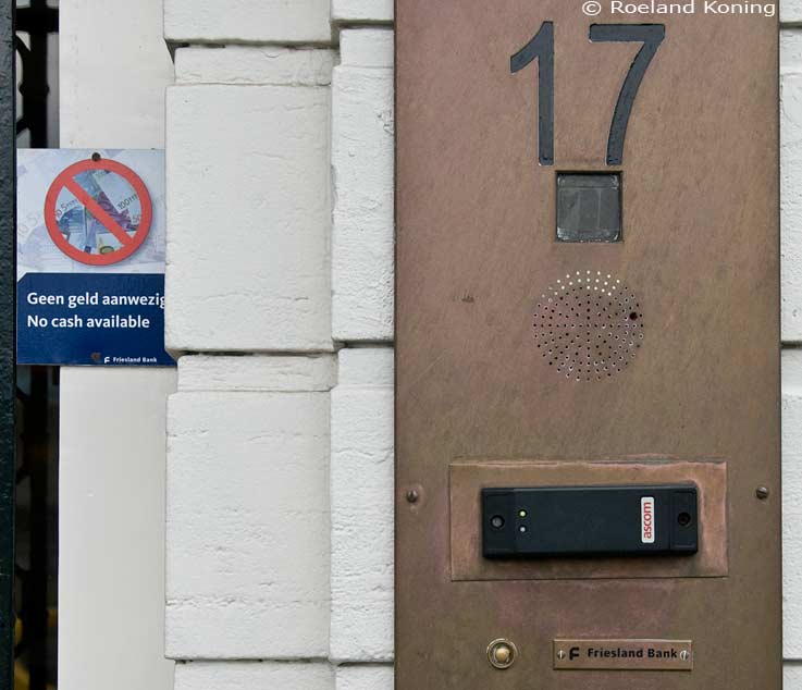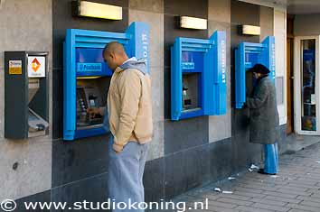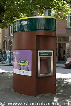 | Pinhuisje ABN-AMRO bank in de Cornelis Schuytstraat, Amsterdam | Geldautomaat voormalige Postbank | ||