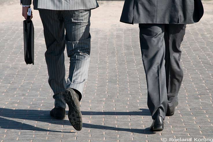 | Amsterdam 13-04-2011; 10.00 uur, autoverkopers op weg naar hun dagtaak op de Auto RAI | |