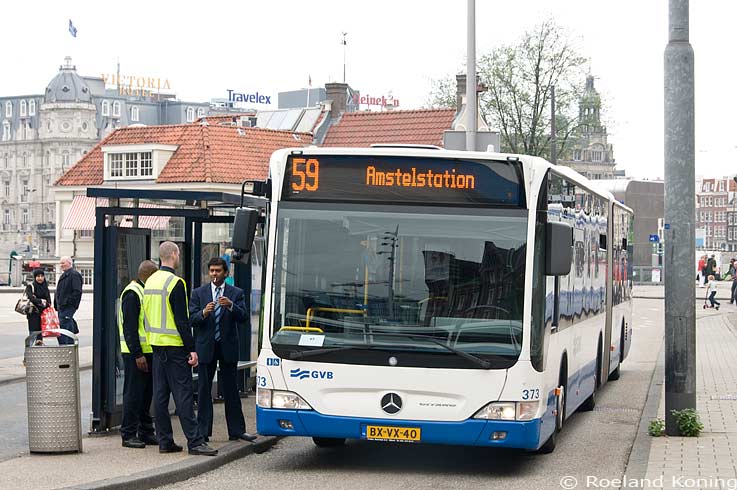 Het GVB zet pendelbus 59 in tijdens metrotunnelsluiting. Van zaterdag 23 juli t/m zondag 4 september werkt de gemeente Amsterdam aan de veiligheidsvoorzieningen in de ondergrondse metrostations en de metrotunnel. Hierdoor is er geen metroverkeer mogelijk tussen Amsterdam Centraal en station Amstel. Stationseiland, voor het Centraal Station; 27-07-2011 |