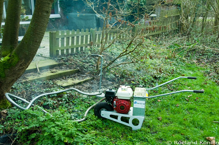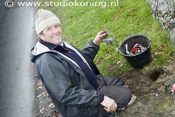 | Mollenbestrijding met behulp van koolmonoxide. De ritten van de mollen worden uitgerookt . | |