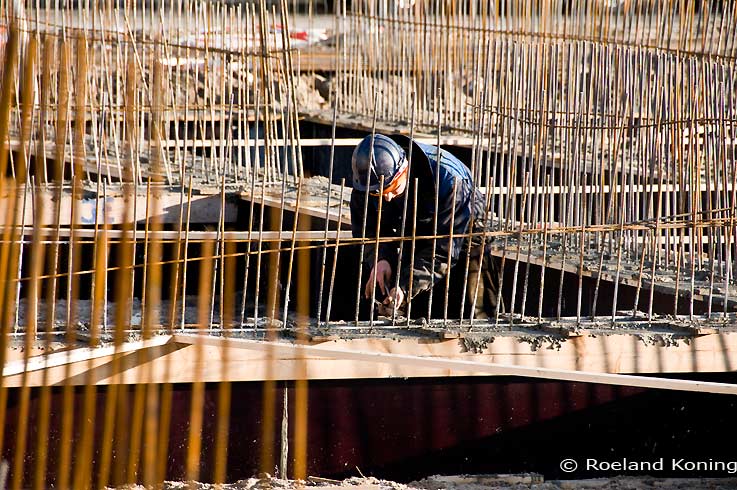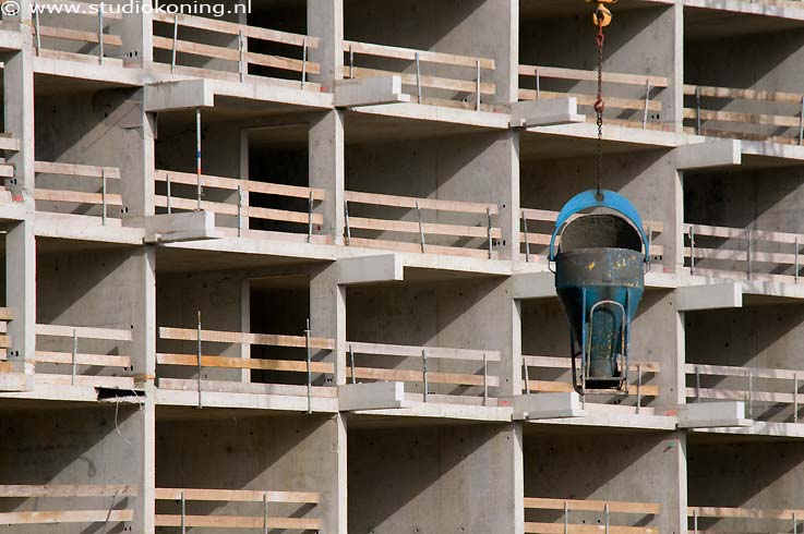 | Betonvlechter in de Overschiestraat kijkend naar oost, de achterkant van het Delflandplein. 05-01-2011 | |
