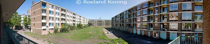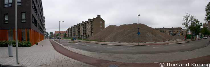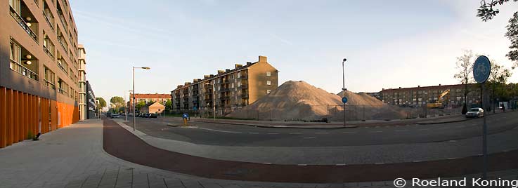 | Derkinderenstraat, hoek Jan Voermanstraat 11-06-2010 ( naar ZW ) Montage van 5 opnames | |