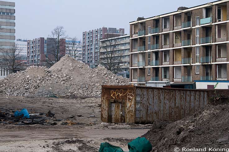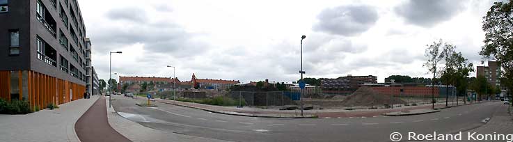 | Louis Apolstraat, gesloopte flats, Rechts de achterkant van de Derkinderenstraat, vanaf de Johannes Hilverdinkstraat, naar NO. 12-04-2010 | |