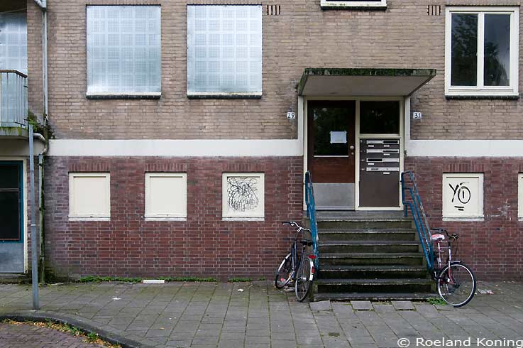 | Jan Voermanstraat, hier op nummer 7 vlak bij de hoek groeide Samir Azzouz op. ( vanaf de Derkinderenstraat naar ZW ) Foto 18-07-2009 | |