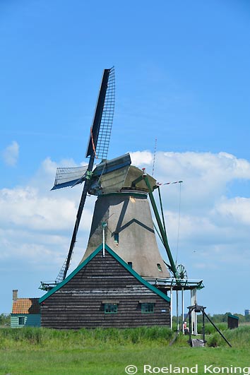 Molen het Prinsenhof in Westzaan dateert uit 1722 en is tot 1899 gebruikt voor het pellen van gerst tot gort. Daarna werden cacaodoppen 20 jaar lang verwerkt. Rond de Eerste Wereldoorlog werd er ook zaagsel tot houtmeel vermalen. Hij heeft een buitengewoon groot vermogen van 90 pk. Biij een brand in de avond van 2 januari 2008 ging de hut (molenaars dagverblijf) aan de voet van de molen helaas in vlammen op. Er is nu weer een nieuw huisje opgetrokken. De molen werd nooit bewoond maar diende slechts als pellerij. Foto's 31-05-2014 |