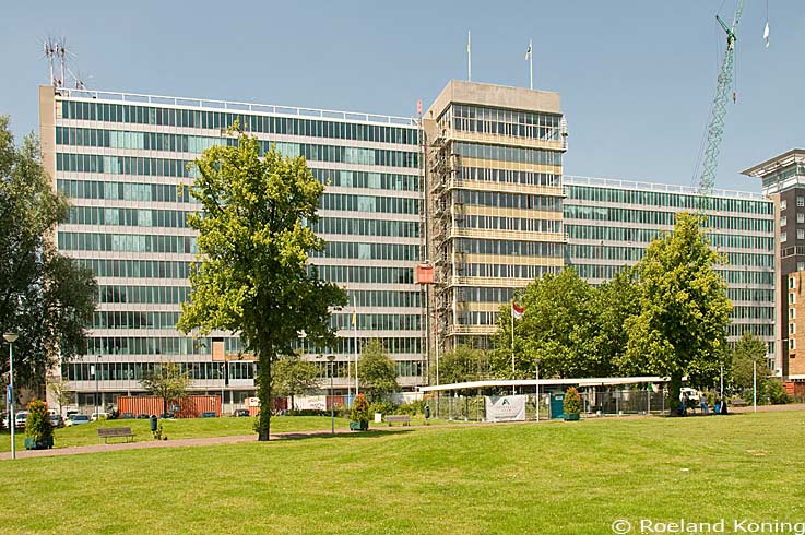 | Het Voormalige GAK kantoorgebouw van architect Ben Merkelbach uit 1958 wordt verbouwd tot studentenhuisvesting. Het heeft een oppervlak van 40000 vierkante meter. Foto 25-07-2012 | ||||||