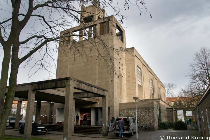 | In de Sint-Josephkerk, Erik de Roodestraat, Robert Scottbuurt, worden vanaf 02-12-2012 de uitgeprocedeerde asielzoekers een dak geboden die eerder bivakkeerden aan de Notweg. Foto 06-12-2012; De voormalige kerk, naar een ontwerp van architect G.H.M. Holt werd in 1952 in gebruik genomen en deed dienst als godshuis tot 1990. De kerk ging een aantal maanden in 2012 en 2013 "Vluchtkerk" heten. De Vluchtelingen vertrokken in juni naar de Jan Tooropstraat. | ||||||