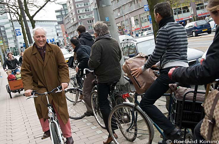 auteur van het boek 'The Creative City: a toolkit for urban innovators', fietsen door Amsterdam West. Bos en Lommerweg 10-04-2012 |
