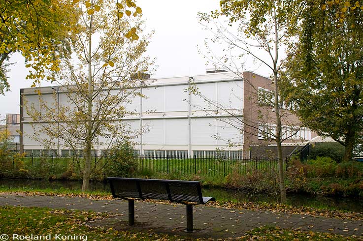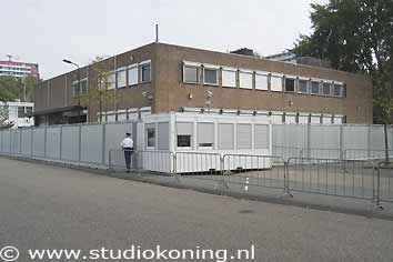 | De achterzijde van de extra beveiligde rechtbank "De Bunker", gezien vanaf de Osdorperban 28-10-2011 | |