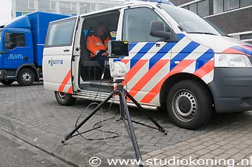 Auto met camera voor kentekenonderzoek, Start groot liquidatieproces in de Bunker in Osdorp 09-02-2009 |