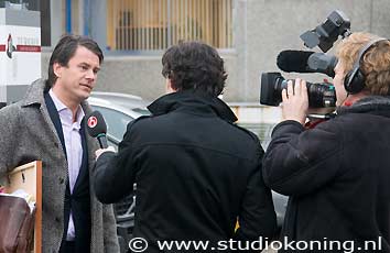 | Verslaggever van RTL-nieuws doet om 14.00 voor camera verslag van de uitspraak in het Passage liquidatie proces; foto 29-01-2013 | |