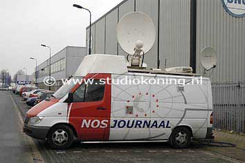 | De verenigde pers en politie bij de start van het proces tegen de pedofiel Robert M. met een proforma-zitting op 17-03-2011 Geblindeerd Transit busje rijdt de garage onder de bunker binnen. | |
