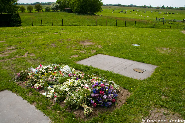 Het graf op de begraafplaats Spaarnwoude van de op 1 juni 2013 begraven kunstenares Gisèle d'Ailly-van Waterschoot van der Gracht (1912-2013). In 1957 trouwde Gisèle Van Waterschoot van der Gracht ( het meisje met de natste naam van Nederland, aldus dichter A. Roland Holst) met Arnold Jan d'Ailly die van 1946 tot 1956 burgemeester was van Amsterdam. Ze liggen naast elkaar begraven op het kerkhof. Ik zag haar voor het eerst op het Griekse eiland Paros in 1971 waar ze 25 jaar lang een atelier had. Foto 03-06-2013. gebrandschilderde ramen van haar kan je bekijken in de schuilkerk van het Begijnhof in Amsterdam. |