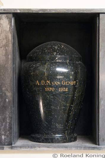 Urn van architect Adolf Daniël Nicolaas van Gendt (1870-1932), zoon van vader Adolf Leonard van Gendt. Foto 27-08-2013. |
