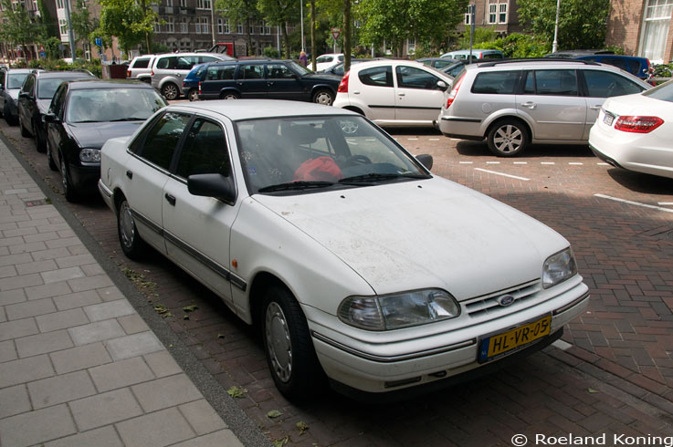 | Je ziet ze bijna niet meer: Ford Scorpio uit 1994 in de Johannes Vermeerstraat. Foto 11-06-2013 | |