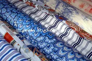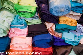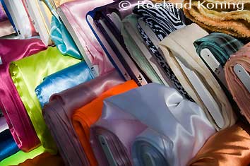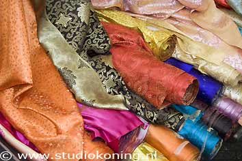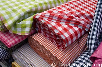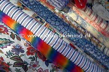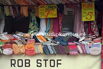 Stoffenkraam op de markt |