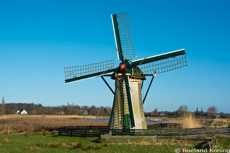 De Oudenhofmolen in Oegstgeest is een polder- wipmolen en dateert uit 1783; Foto uit 2013 |