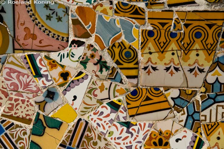 Gebroken tegels op de bank van Park Guell in Barcelona