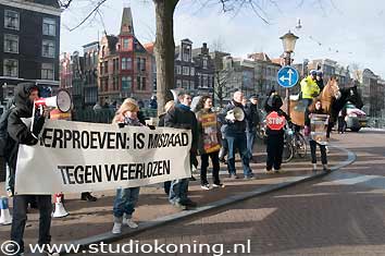 Keizersgracht: "DIERPROEVEN: IS MISDAAD TEGEN WEERLOZEN" |