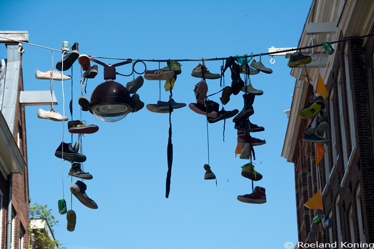 | 1e Lindendwarsstraat, schoenen boven het wegdek. Foto 24-05-2015 |