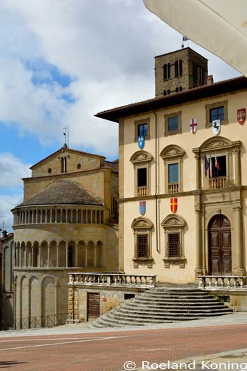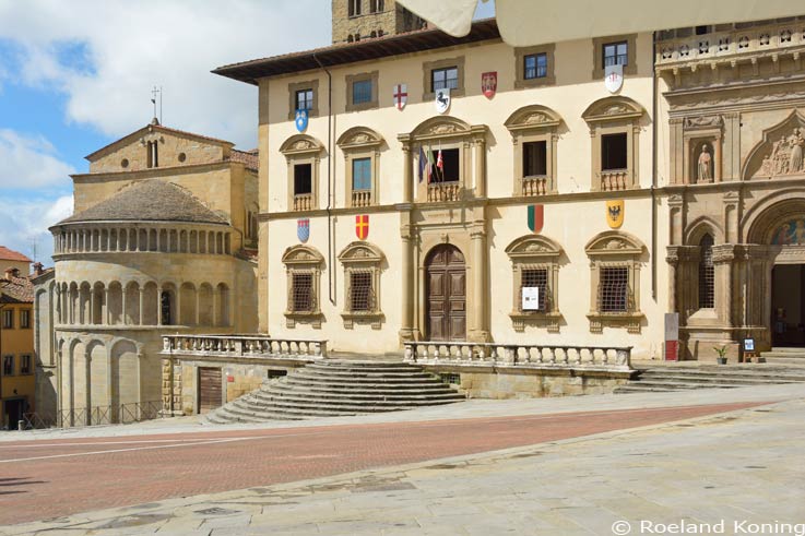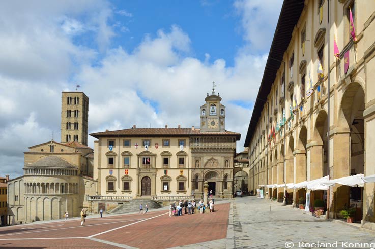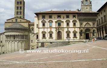 | Piazza Grande in Arezzo, links de Pieve di Santa Maria, rechts de Colonade van Versari uit 1573 | |