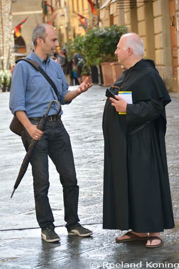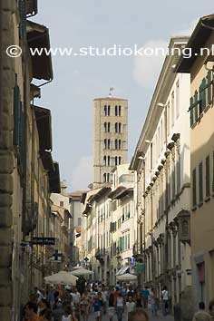 | Arezzo, ontmoeting in de Via Guiseppe Massini. | De apsis van de Romaanse kerk Pieve di Santa Maria, uit ongeveer 1008. Arezzo, Toscane |