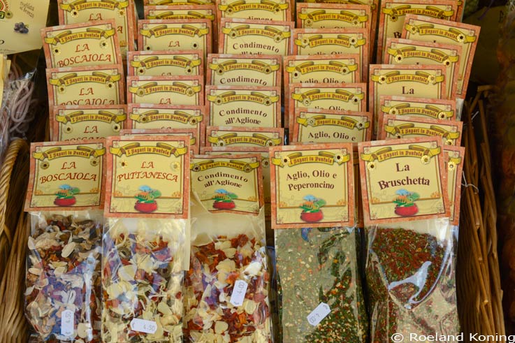 | Overal in Toscane liggen voor de toeristen zakjes kruiden te koop. Corso Italia, Arezzo. | |