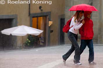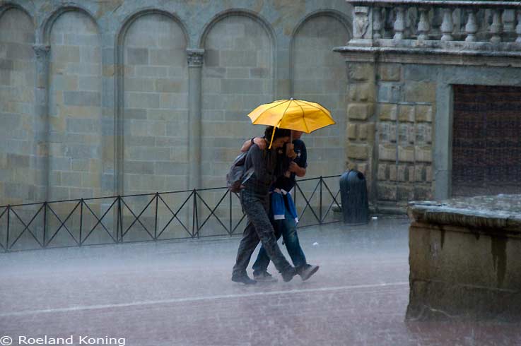 | Arezzo, Piazza Grande, "ieri, ma ieri pioveva, oggi piove, domani piovera!" | |