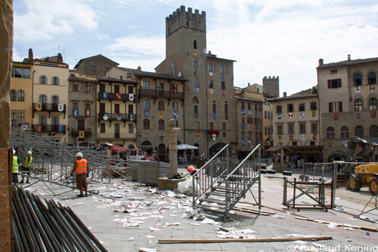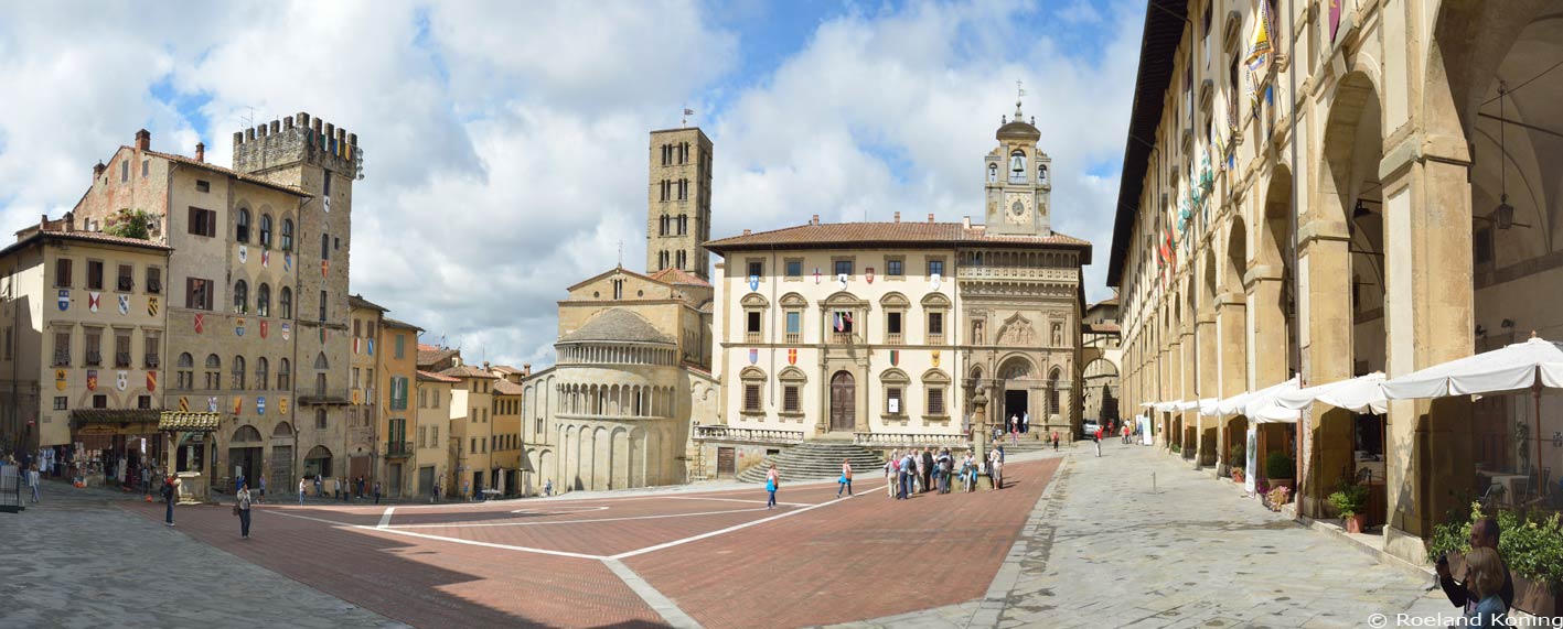 | Arezzo, panoramafoto van het Piazza Grande. Voor een 50 cm groot beeld, klik op de foto. | |
