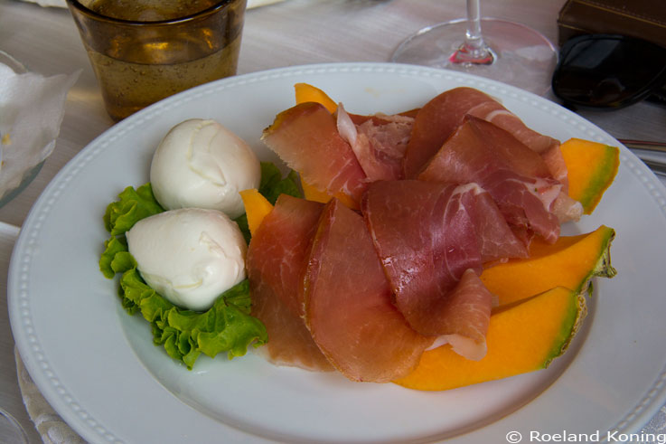| Meloen met ham en mozzarella, La Lancia d'Oro, Piazza Grande 18, Arezzo, | |