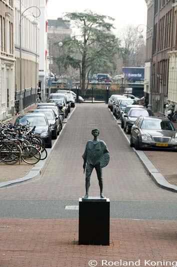 | Beeldje van Rembrandt voor het Amstel Hotel op het Professor Tulpplein. Foto kijkend in de Tulpstraat, 03-04-2013 |